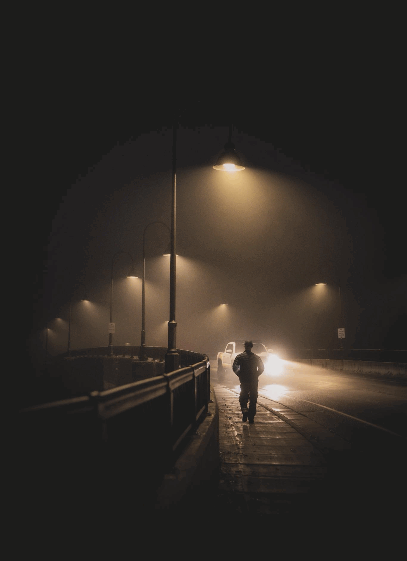 Nhìn lại bức ảnh này — một người đi trong đêm, ánh đèn chỉ đủ chiếu vài mét — mình thấy hình ảnh của chính mình trong những chặng đường đã qua.